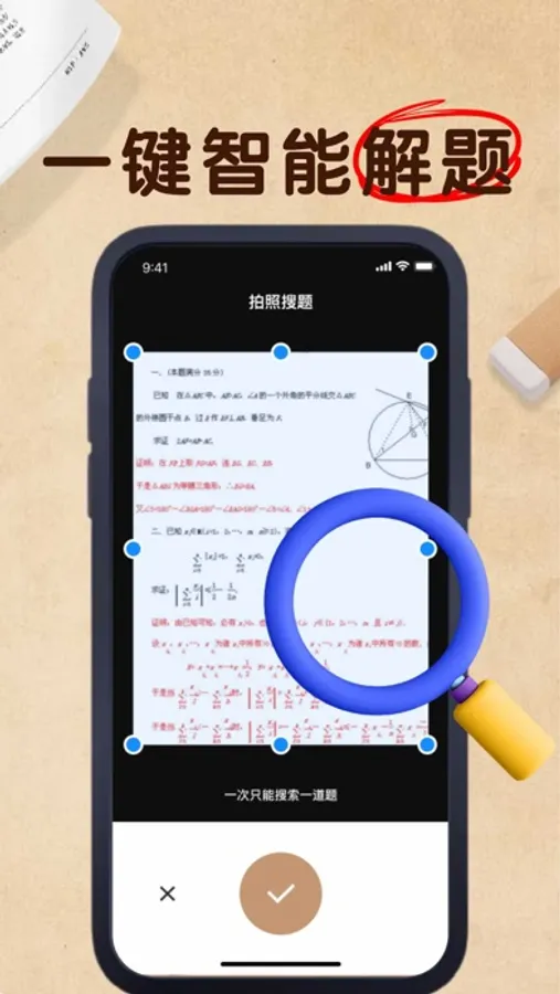 遇到难题不会解,想找找答案?在向春拍照搜题软件,再也不必辛苦打字找题,只需打开摄像头,轻轻一拍、题目尽现眼前,答案与解析从此轻松可得,帮您在考公、考学路上大大节约时间,效率杠杠的!
