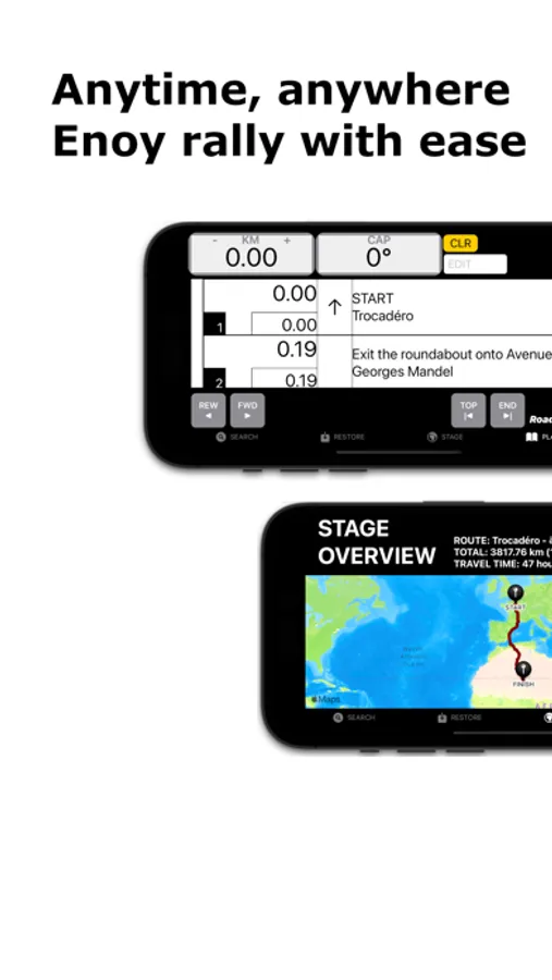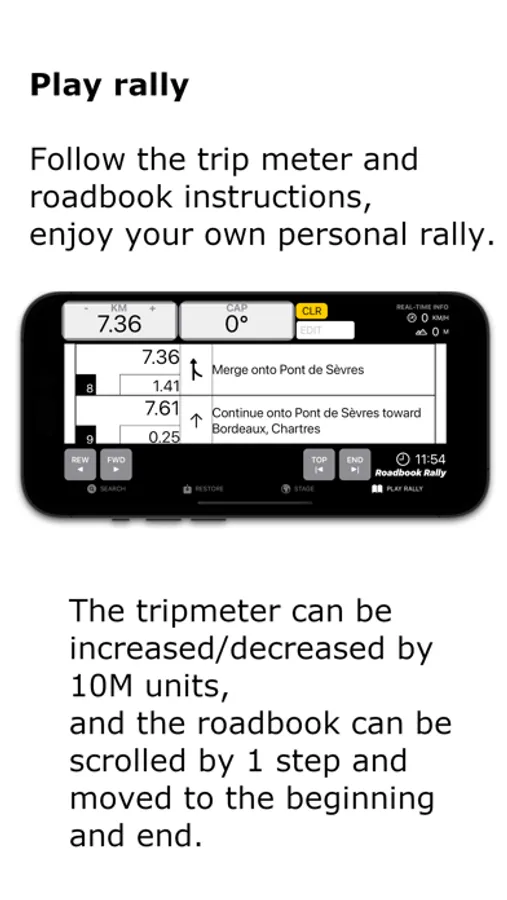 This app has a function to automatically generate a roadbook and uses an integrated rally computer to support users to easily enjoy the rally.
