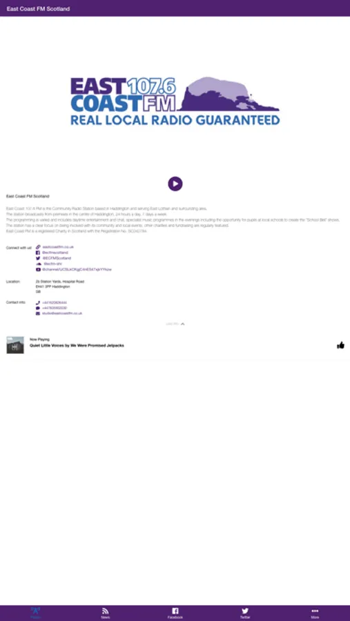East Coast 107.6 FM is the Community Radio Station based in Haddington and serving East Lothian and surrounding area.