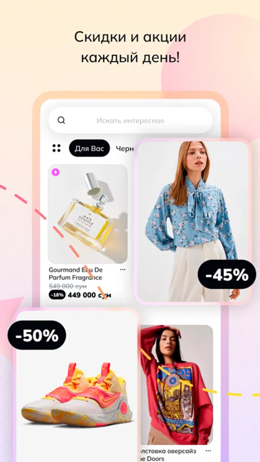 1. Tovarlarni qiziqishlaringiz va so'nggi trendlarga moslab tanlash. Flymart tovarlarni sizning qiziqishlaringizga to'liq moslashtiradi, shuningdek, eng so'nggi moda trendlarini taklif qiladi. Bizning marketpleysimiz ko'plab sotuvchilardan tovarlarning keng tanlovini taklif etadi, bu sizga noyob va eksklyuziv takliflarni topish imkonini beradi.