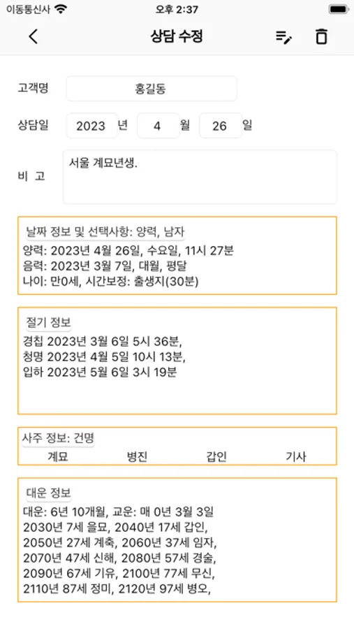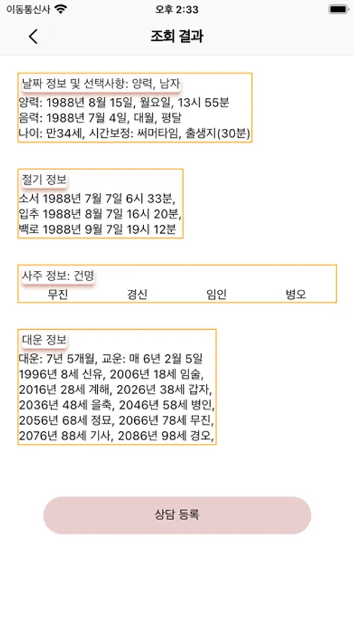 한국천문연구원 음양력 데이터 및 24절기 데이터를 이용하여 정확한 사주를 구성합니다.