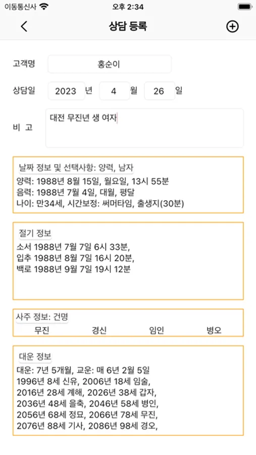 대략적인 대운이 아니라 대운이 실제로 변경되는 정확한 날짜까지 표시합니다.