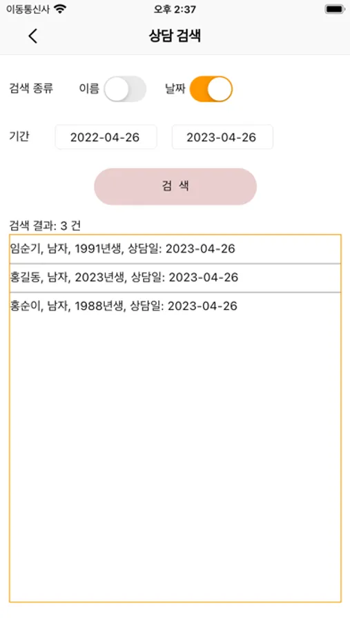 상담 내용 검색, 등록, 수정, 삭제 등 상담관리 기능을 제공합니다.