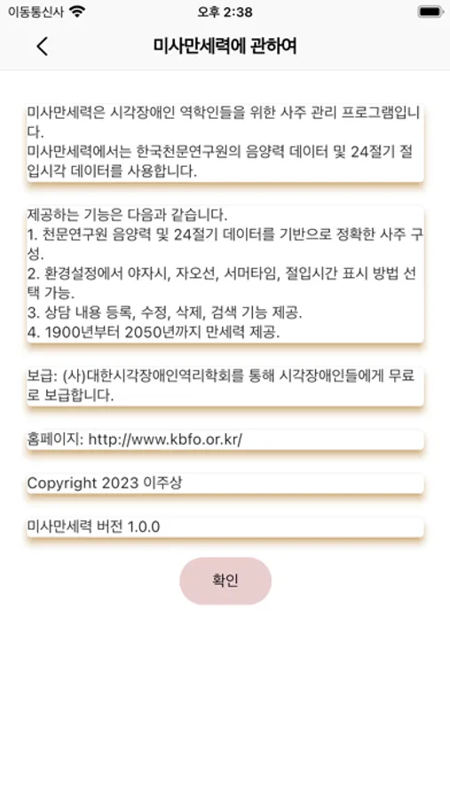 전맹 시각장애인용 만세력 및 사주관리 프로그램 원화소복 미사만세력입니다.