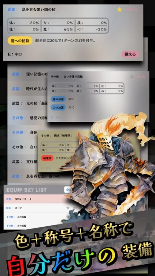 キャラクターに合った装備がドロップするかは運次第。レアドロップを狙って周回し、気に入った装備を超強化。