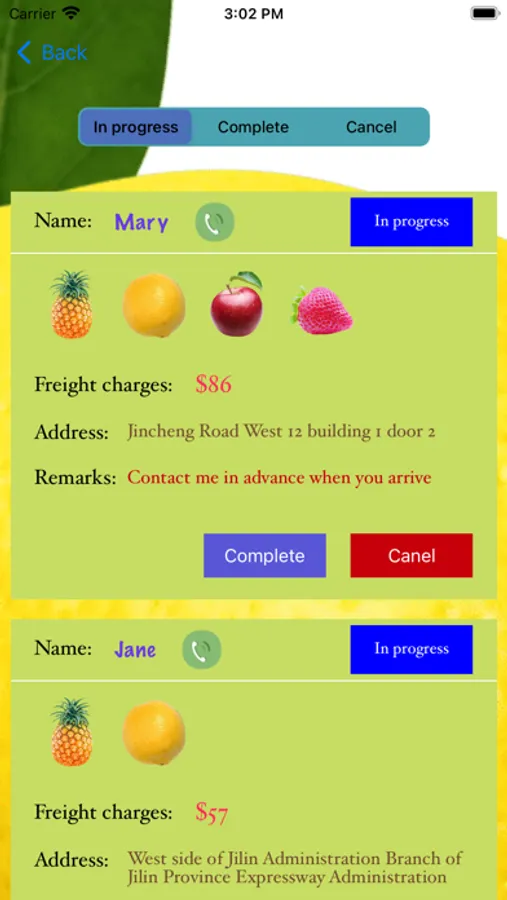 JiLin city Fruit delivery is an app for online fruit delivery. Users can take orders in the lobby. You can click to complete the order after completing the delivery.