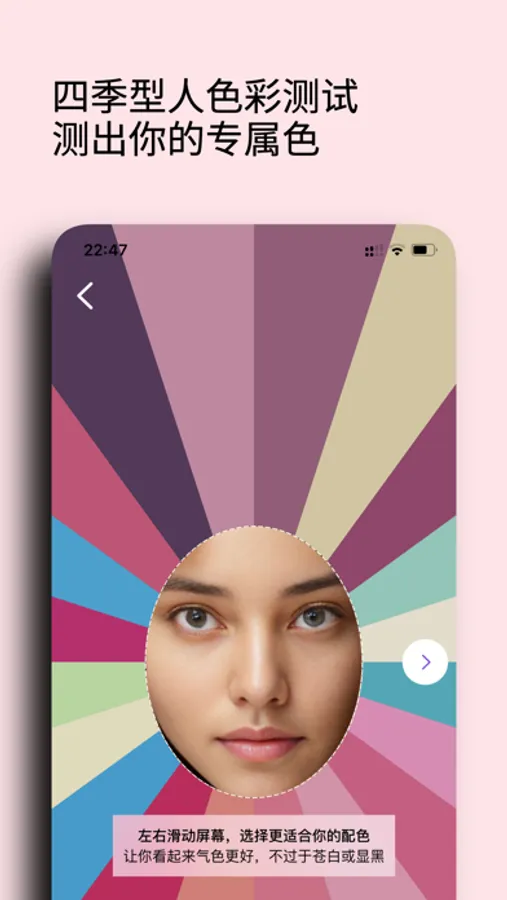 【色彩测试】火爆日韩的四季型人色彩测试,通过肤色、发色、瞳色等确定你的季节类型(春/夏/秋/冬),并依此推荐穿搭和美妆色系,帮你找到最能凸显魅力的个人专属色。简易版一键测试,方便快捷;完整版题目更丰富,结果更准确,还可解锁专属配色推荐