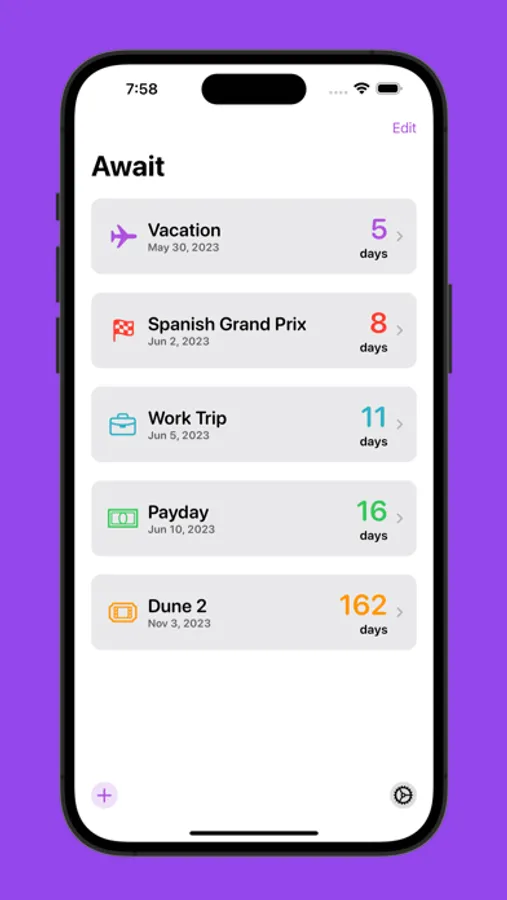 See your countdowns on your Home Screen by adding the Await widget to it.