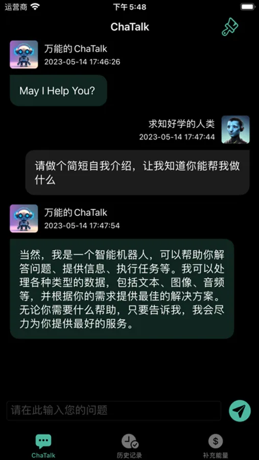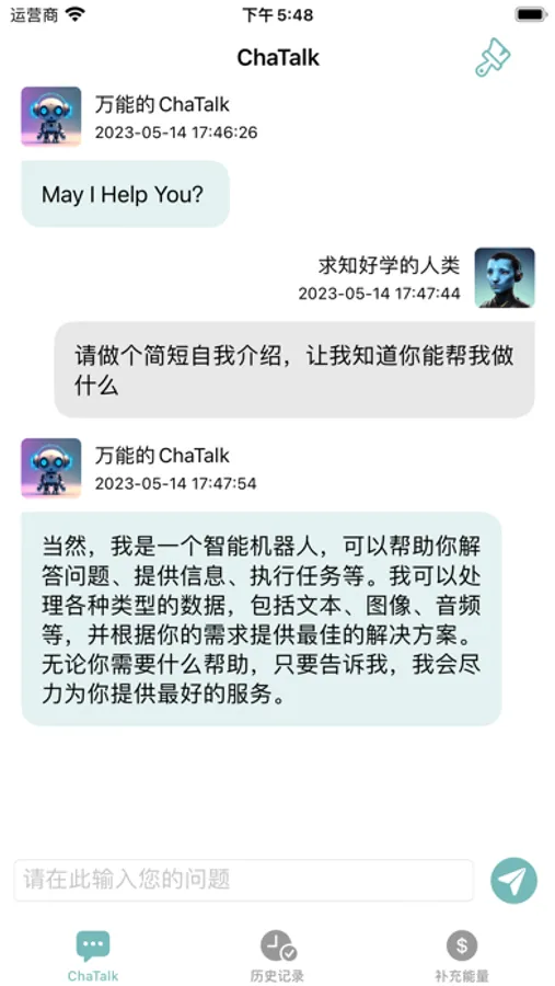 ChaTalkAI是一款免翻墙,免注册,打开即用,基于GPT4内核apikey开发的应用。