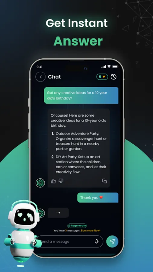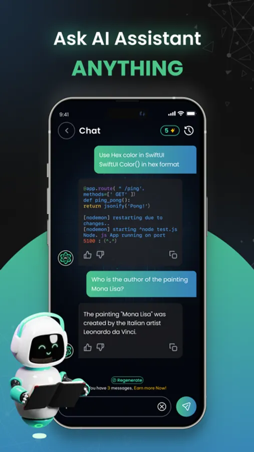 Not only is the AI Chatbot Smart, but it's also easy to use. You can start your AI chat off the bat. Smart AI Chat with a simple interface that lets you get down to chatting with AI right away. Just type your question, and the ChatAI - Ai Chatbot Assistant will provide a response here and now.