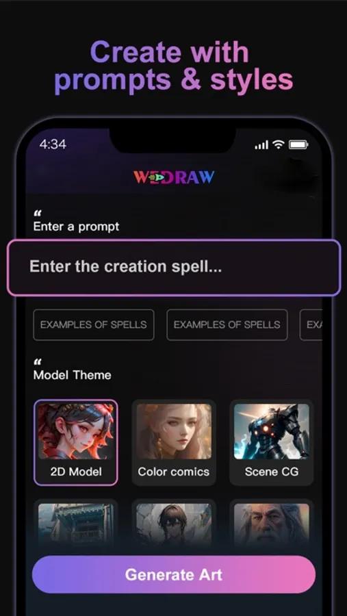 Unleash your creativity and become an artist with the power of artificial intelligence! "wedraw" is the ultimate app for having fun while effortlessly creating one-of-a-kind, stunning art! Simply choose a subject, select an amazing style, and within seconds, you'll have a breathtaking and unique artwork that has never been seen before.