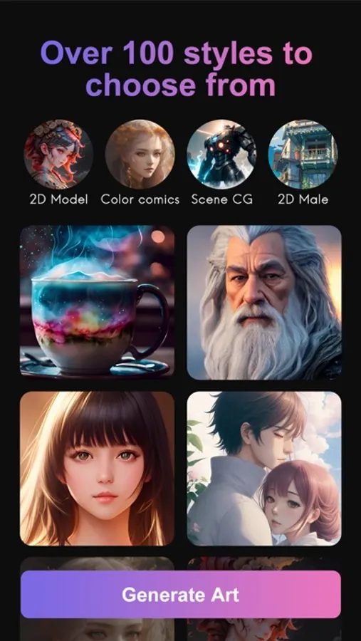 BEAUTIFUL ART STYLES Choose from various art styles powered by AI: