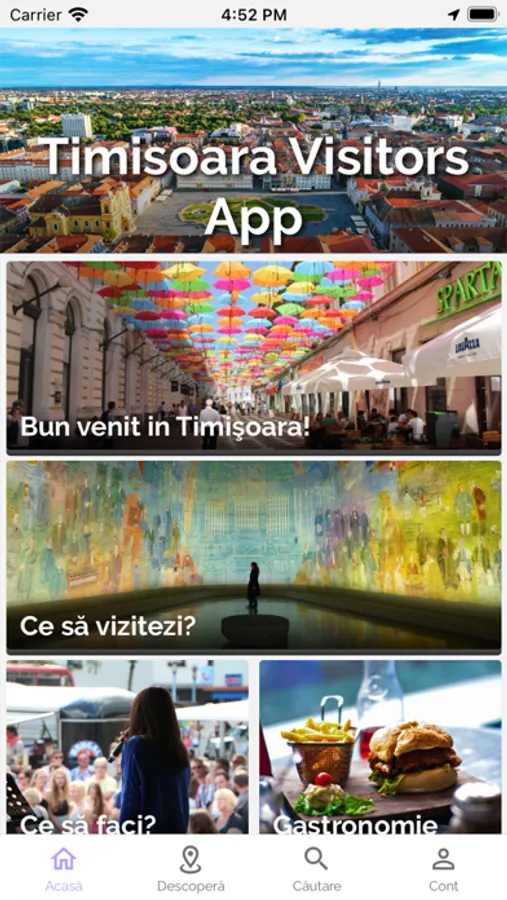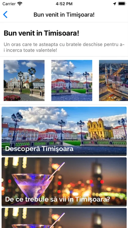 Timisoara Visitors App is a mobile application that presents the city in all the nuances and fine details that gives the city an inexplicable charm, letting the visitor experiment the various dimensions of the city.