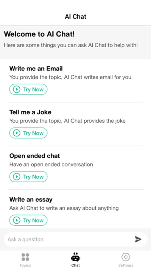 Download the AI Chat app now and have your virtual assistant always at hand.