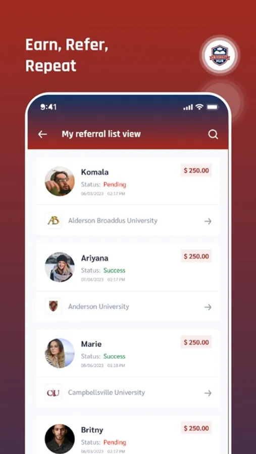 Are you a student looking to refer your friends to study abroad and earn rewards? University Hub is here to help! With our easy-to-use app, you can invite your friends to enroll in courses at top foreign universities and earn a minimum of $250 for each successful referral. Our user-friendly dashboard allows you to track your earnings and the status of your referrals. Download University Hub now and start helping your friends study abroad today!