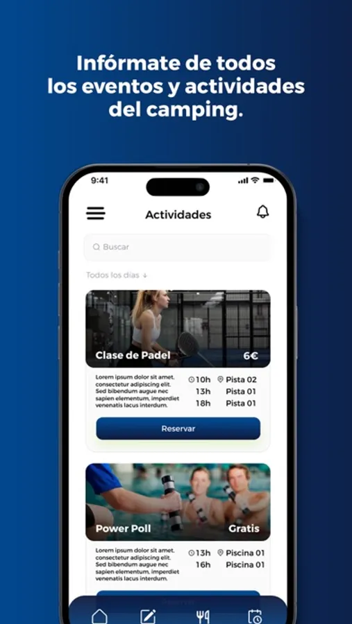 Con nuestra App tendrás el camping en el bolsillo. Tras registrar tu estancia y elegir tu idioma, obtendrás acceso a todas las actividades, servicios y productos del complejo desde un único sitio, a través del cual podrás efectuar reservas y pagos de forma sencilla. Además, podrás solicitar labores de mantenimiento, notificar incidencias y valorar aquellos servicios o actividades en las que hayas participado. Para vivir la experiencia completa del camping, ¡descárgate nuestra App!