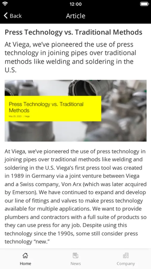The ViegaNow app provides you with information about Viega as we pursue our purpose of Installing Lifelines for the Buildings of Tomorrow, keeping you up to date on the latest company news. With push notifications, you will know what is going on—always and everywhere!