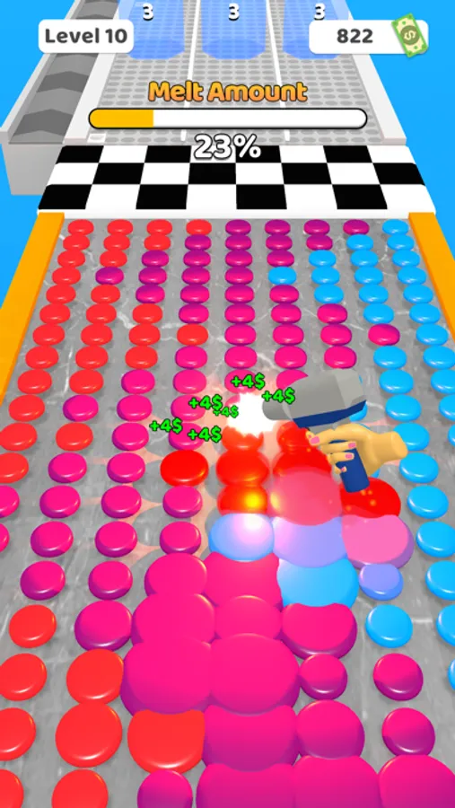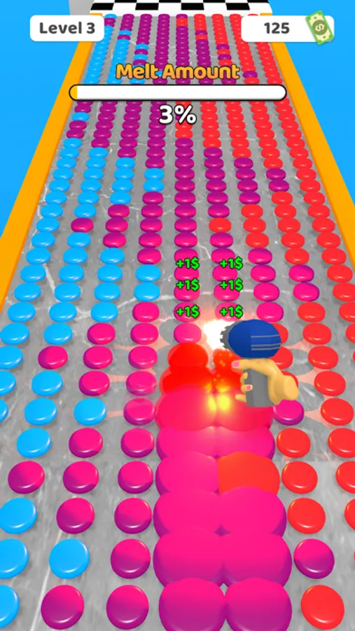 Collect as many diamonds as you can using the roler. Upgrade it with the right gates. Melt the diamonds you collect and start making art!