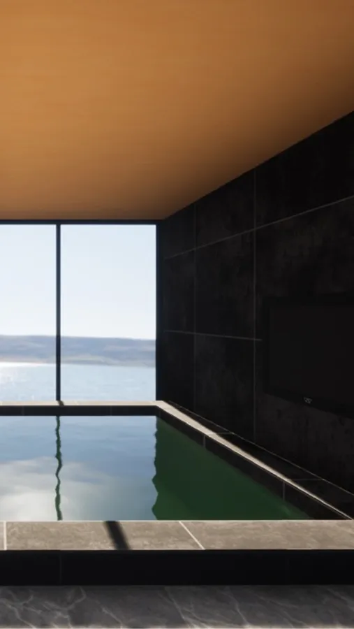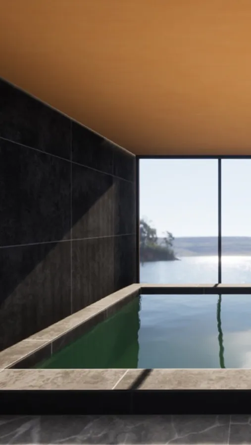 The lakeside and mountain peaks spread out before your eyes, as well as the open-air guest room bath with free-flowing spring water, and the balcony overlooking the lakeside.