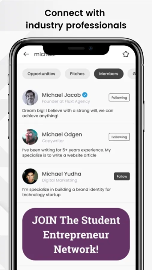 Our professional network is designed to help students and recent graduates take the first step towards building their career. With a focus on connecting individuals with companies and organizations that share their values and passions, our platform is dedicated to helping users achieve their goals and reach their full potential.