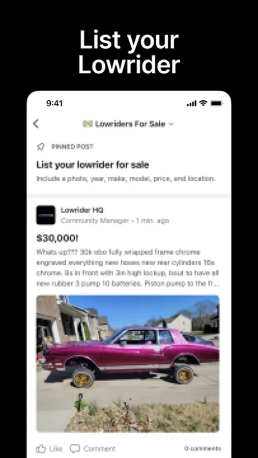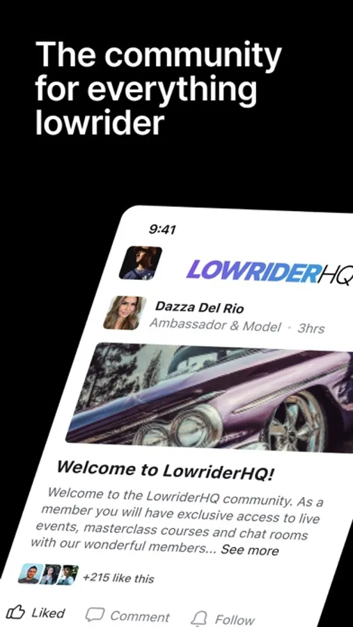 LowriderHQ is the new for all things Lowrider. It's where Lowrider owners and businesses hangout. Members find and list events, manage car clubs, masterclasses with experts and buy and sell cars all in one easy app.