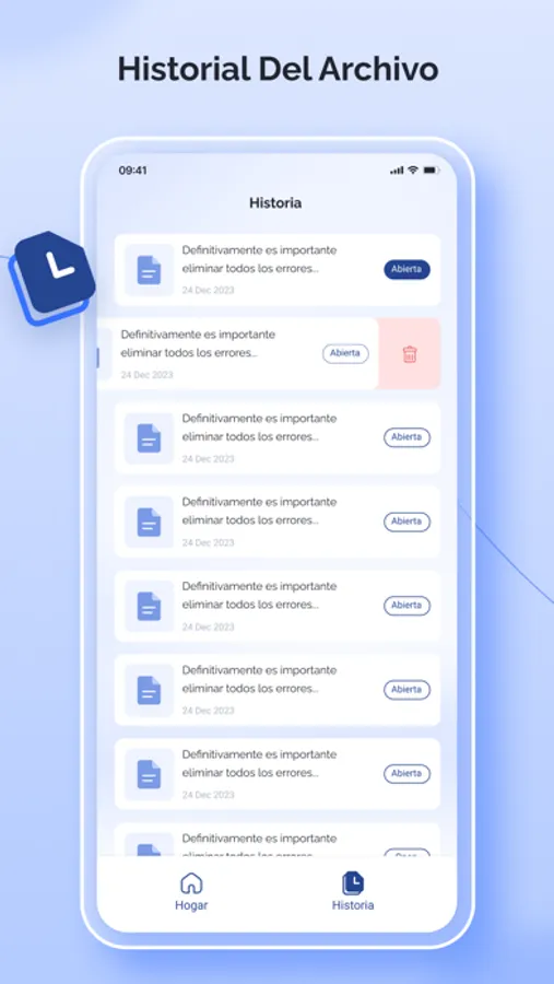 Nuestra aplicación también viene con una opción de "Historial" que puede usar para acceder a documentos antiguos. Esta opción guarda los documentos que consulta con la aplicación. Más tarde puede abrirlos y descargarlos en su dispositivo, o copiar el texto directamente en su portapapeles.