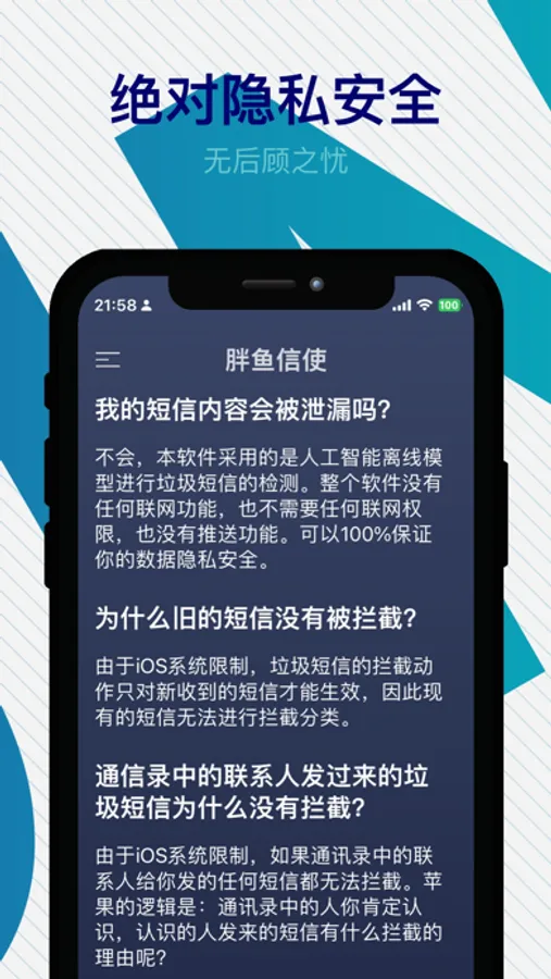 在胖鱼信使,我们坚守这个承诺。我们相信您下载我们的App是为了享受更干净、更方便、更安全的短信体验,而不是被广告打扰或推动内购。因此,我们郑重承诺:我们将永远不在我们的App中添加广告,也不会向您推送内购信息。