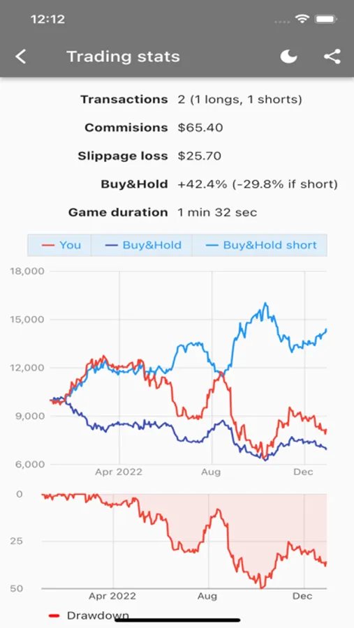 Chart Master allows you to test your trading strategy using historical data in a gamified manner. You learn trading by engaging with charts, making buy/sell decisions, and setting stop-loss or take-profit orders. You can utilize indicators, draw trend lines, or apply Fibonacci levels, just like in real trading. The best part? You won't risk your money or spend excessive time waiting for market movements.