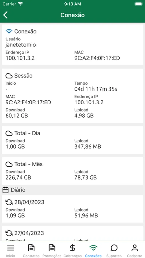 * Consulte seu consumo de rede