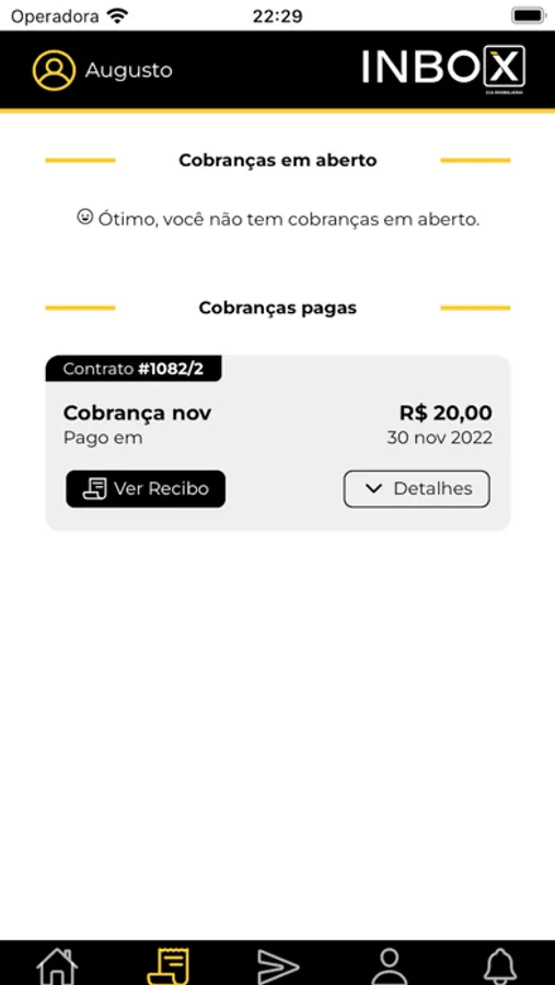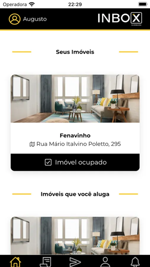 O aplicativo da Inbox Cia Imobiliária para locadores e locatários consultarem informações em tempo real sobre contratos e imóveis, emitirem a segunda via boletos de cobranças e acessarem relatórios de repasses.