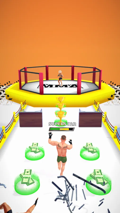 Feel yourself in the role of a fighter. Avoid obstacles, collect items to improve your body and challenge the best MMA fighters.
