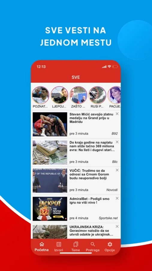 Sa Novine Srbija aplikacijom, više ne moraš pretraživati više izvora i provoditi vreme na pronalaženju vesti koje te zanimaju. Sve je dostupno na jednom mestu, brzo i jednostavno.