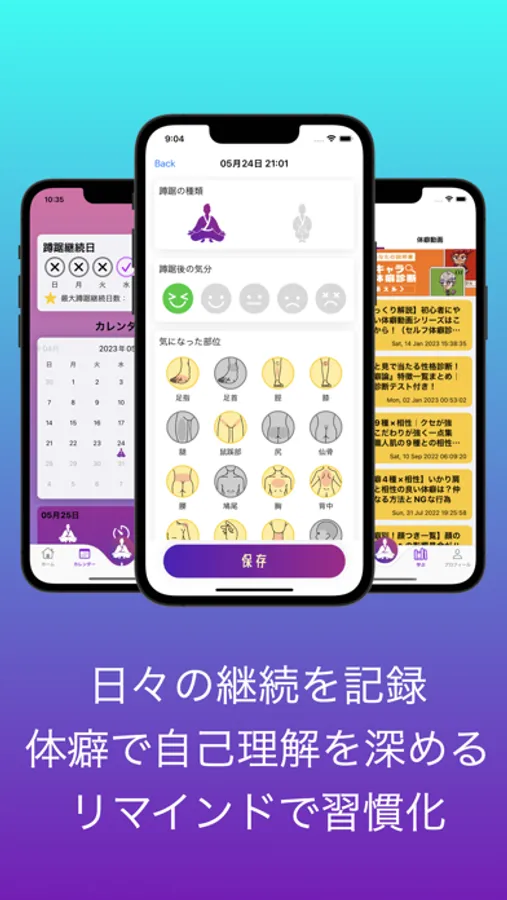 ・蹲踞中に感じたカラダの部位の機微を記録し日々の変化を確認できる