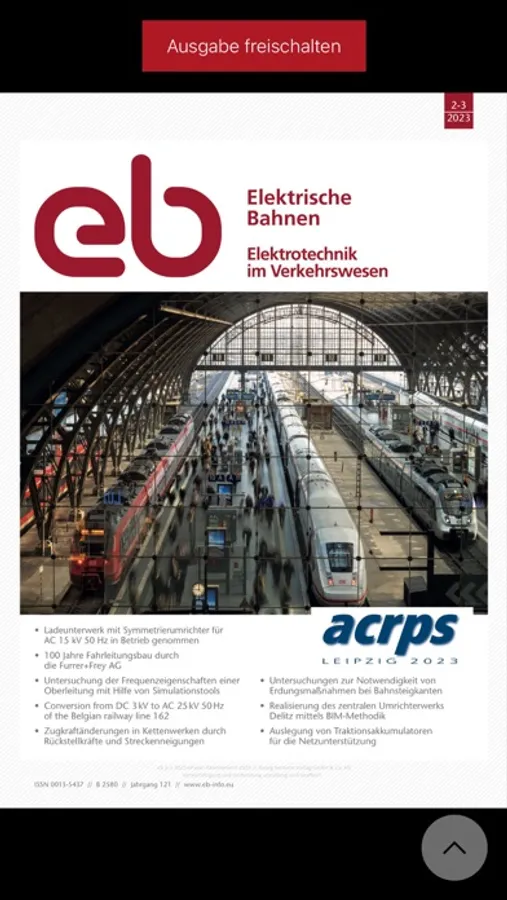 Führende Fachzeitschrift für Entwicklung, Bau, Betrieb und Instandhaltung elektrischer Bahnen und neuer Verkehrssysteme mit den Schwerpunkten Energieversorgung, elektrische Triebfahrzeuge und Elektromobilität