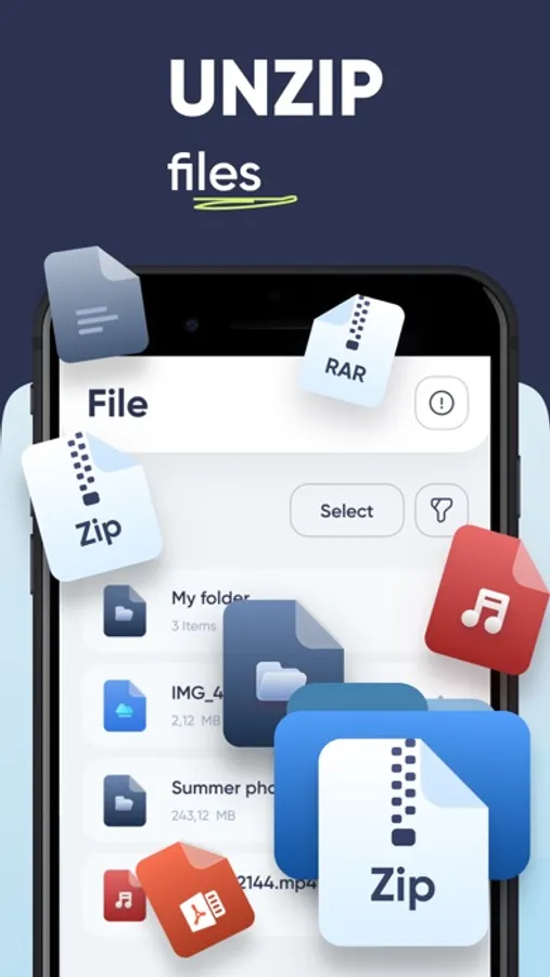 Zip Extractor & RAR Opener App here to assist you with anything you need to unarchive or compress files. The file manager built-in allows to open compressed files, browse them and view content of different extensions. Adapt your files routine with all-in-one solution.