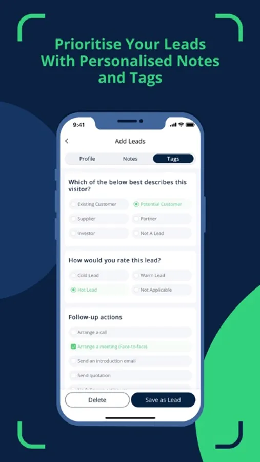 Effortlessly streamline lead retrieval at trade shows, ensuring real-time, accurate lead details, and simplifying follow-up process with notes and tags.