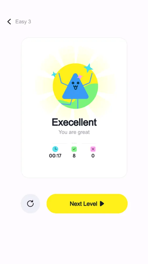 The faster you solve the problems, the more stars you earn. Continuously challenge yourself to achieve higher scores!