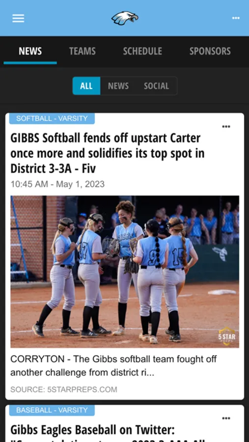 The Gibbs Athletics app is provided and operated by Gibbs High School and features LIVE scoring, schedules, news updates, and rosters for all participating Gibbs Eagles teams and organizations.