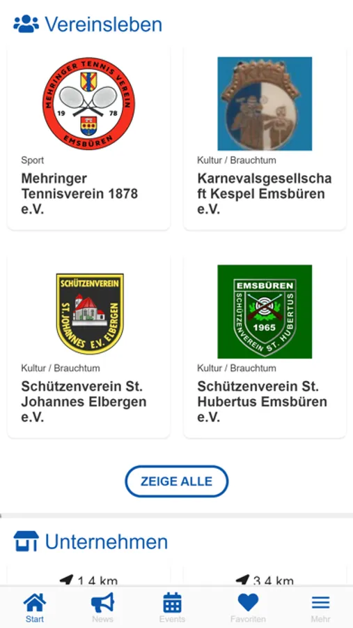 In Dein Emsbüren hat jeder Emsbürener Verein und jedes Emsbürener Unternehmen, egal welcher Größe und aus welcher Branche, die Möglichkeit, über einen eigenen Account Informationen aller Art bereitzustellen. Diese beinhalten grundsätzliche Informationen wie Kontaktdaten, Öffnungszeiten oder eine allgemeine Beschreibung des Unternehmens/Vereins. Ferner können Stellenausschreibungen in einer Jobbörse veröffentlicht werden, aktuelle News/Informationen oder Events und Termine bekanntgegeben werden.