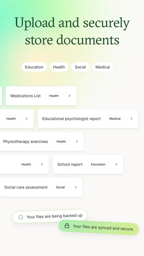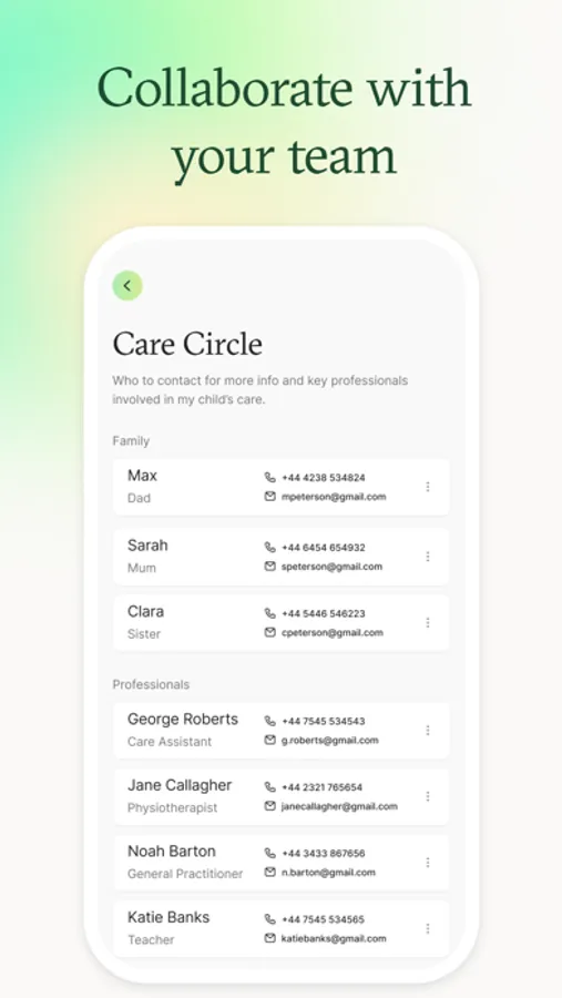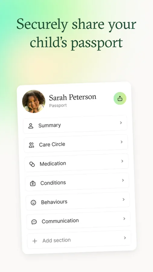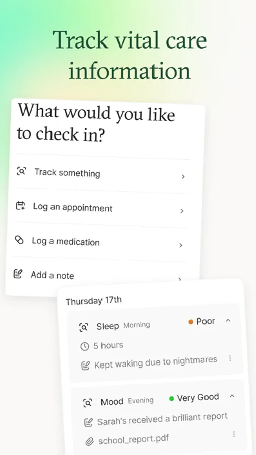• Manage care information: track and share symptoms, behaviours, appointments, medications & more