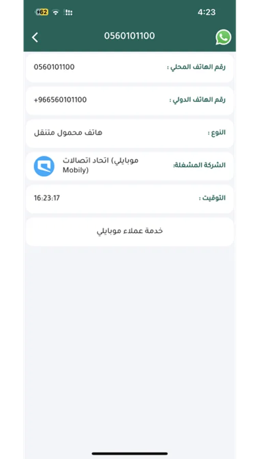 • الشركة المشغلة: تعرف على الشركة المشغلة للرقم.
