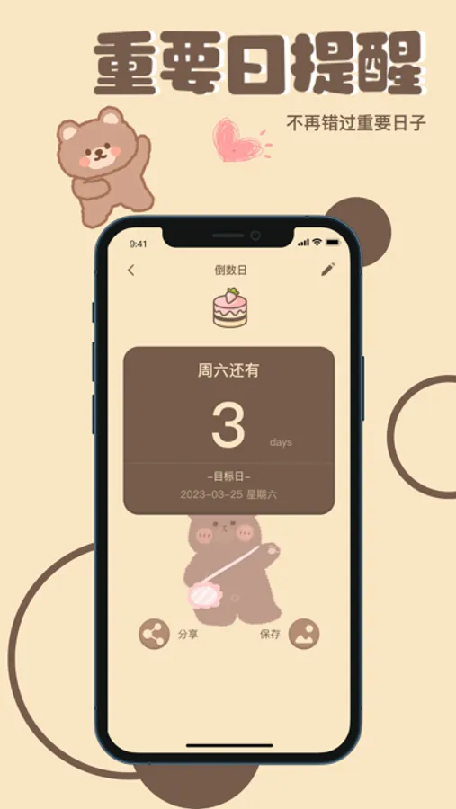这个应用是一个倒计时工具,主要用于倒数纪念日和重要事件的倒计时。它可以轻松地记录和追踪生日、结婚纪念日、毕业纪念日、假期和其他个人或团队的特殊日期。用户可以设置提醒,确保不会错过这些特殊时刻,并在特定日期或时间时收到提醒。该应用可以在智能手机上运行,用户可以随时随地访问和更新他们的倒计时。内置交流群组功能:可以互相提醒特殊日期的设置,分享使用经验。日记功能记录您每一天的日常生活,开心的不开心的事情都可以记录下来哦。