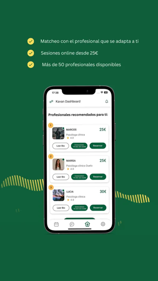 Con Kavan Health, los usuarios pueden encontrar y conectarse fácilmente con psicólogos altamente capacitados y especializados en diversas áreas de la salud mental. Kavan utiliza un algoritmo de matcheo avanzado que tiene en cuenta las preferencias individuales y las necesidades específicas de cada usuario, asegurando así una experiencia de terapia personalizada y efectiva.