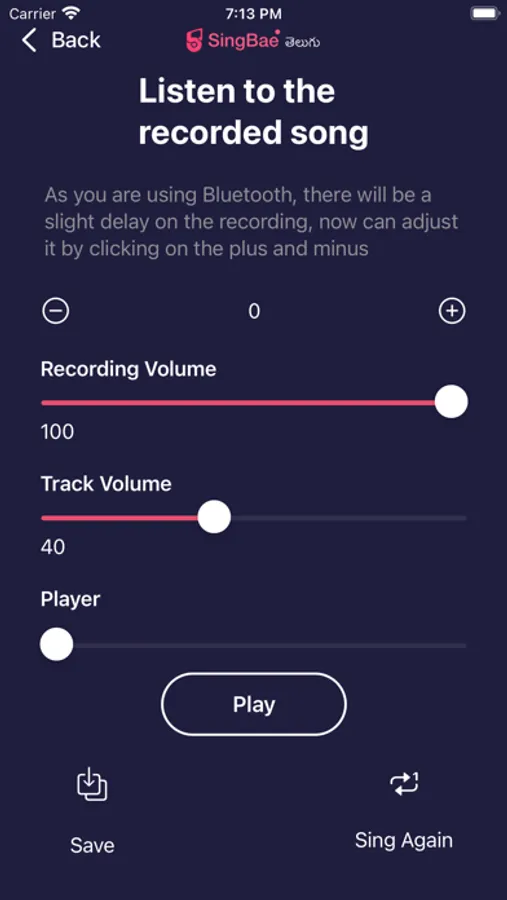 We don’t want you to be restricted to any technical limitations. So, even with the use of any Bluetooth headphones/earphones, you can easily adjust the latency issues by using our state of art most advanced “SingBaė Audio Mixer” tool with just slider buttons! You can boost the audio/instrumental volumes as per your wish and save the recordings, listen to them, and show your talent to your friends and family at any time! We strongly believe that SingBaė will take your karaoke experience to the next level!