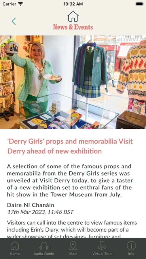Explore the Derry Girls Exhibition using our Audio Guide. The App helps guide visitors and provides further information on the key attractions. Visitors can listen to audio in English and also allows users to stay up-to-date with all our upcoming special events and news.Funded by Tourism Northern Ireland and Derry City and Strabane District Council in parternship with Hat Trick Productions.