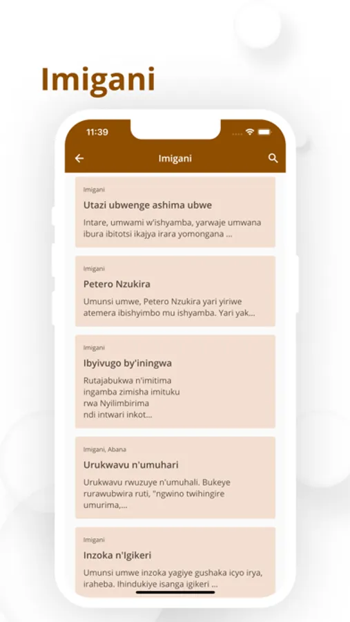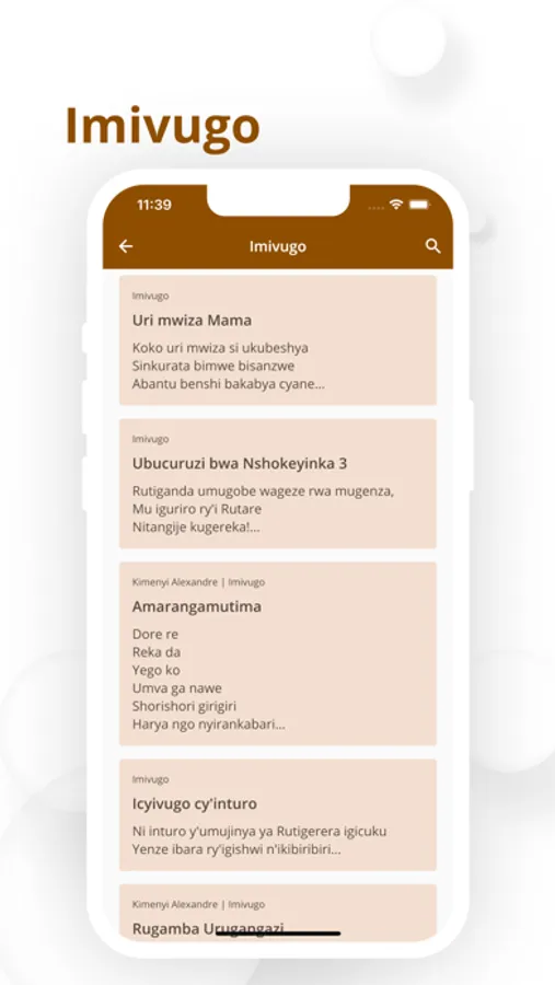 Harimo imigani y'abana, imivugo ku ngingo zitandukanye, n'izindi nyandiko z'abanditsi nyarwanda.