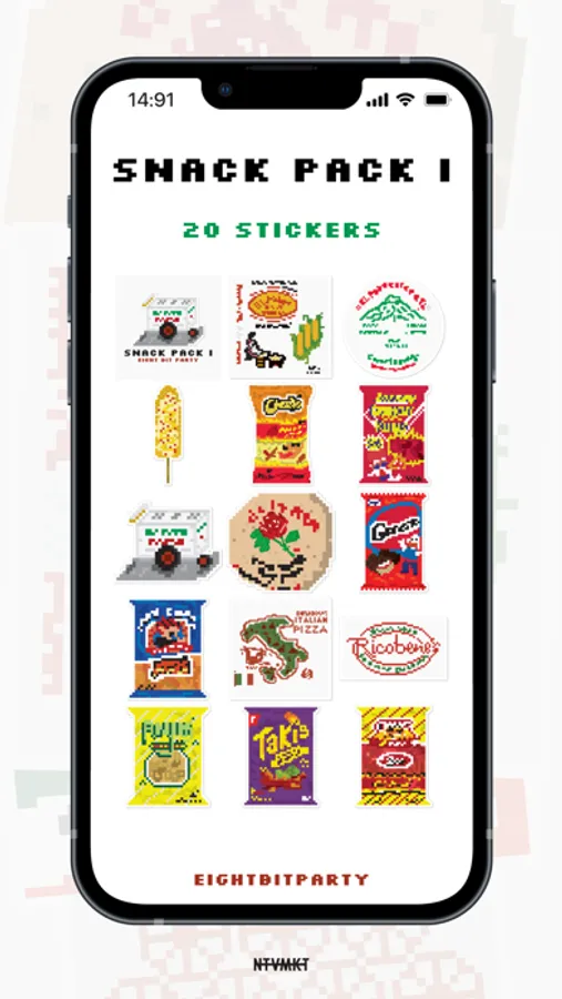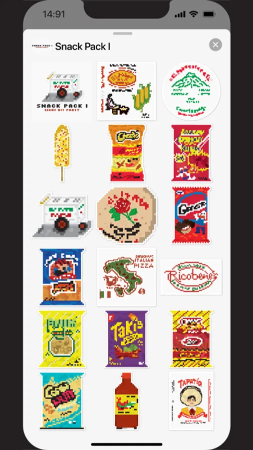 The Snack Pack I Sticker App is designed by @EightBitParty and the initial launch comes with 20 designs.