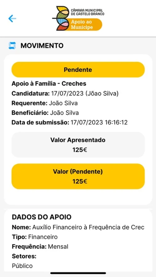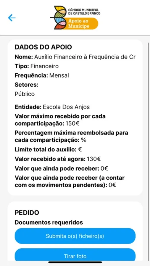 Aplicação de Apoio ao Munícipe de Castelo Branco que permite a gestão e visualização, ao utilizador, dos apoios existentes, às suas candidaturas e movimentos.