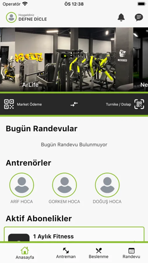 Arlife Fitness Salonu aboneleri mobil uygulamaları sayesinde aşağıdaki işlemleri yapabilir.