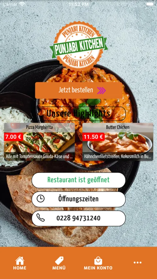 Herzlich Willkomen bei Punjabi Kitchen in Bonn. Wir bedienen unsere Kunden mit Pizza, Biryani, Butter Chicken, Samosa Speisen und machen das seit mehreren Jahren aus Leidenschaft. Wir freuen uns immer wieder neue Kunden unsere Herkunft näher zubringen und möchten ihnen die Möglichkeit geben, ihre Bestellung unkompliziert und total einfach abzugeben. Aus diesem Grund, möchte wir ihnen unsere neue App und unseren Online Shop vorstellen, mit dem Sie problemlos über Paypal, Bar und Kreditkarte zahlen können.